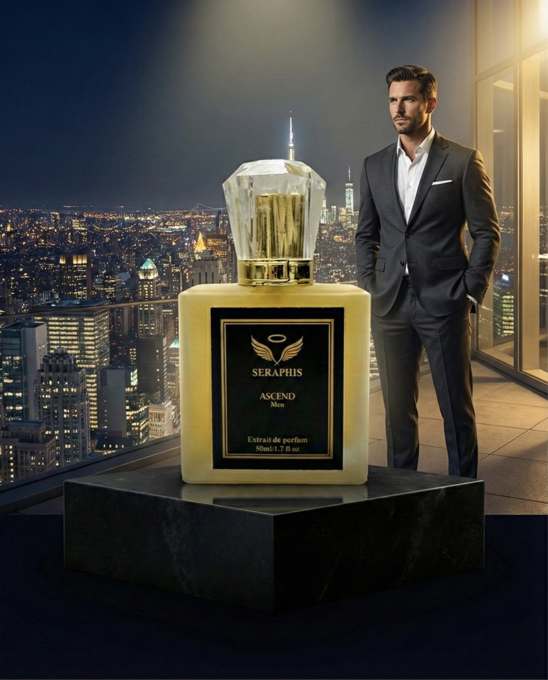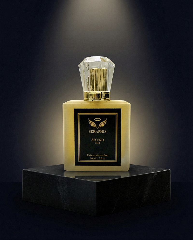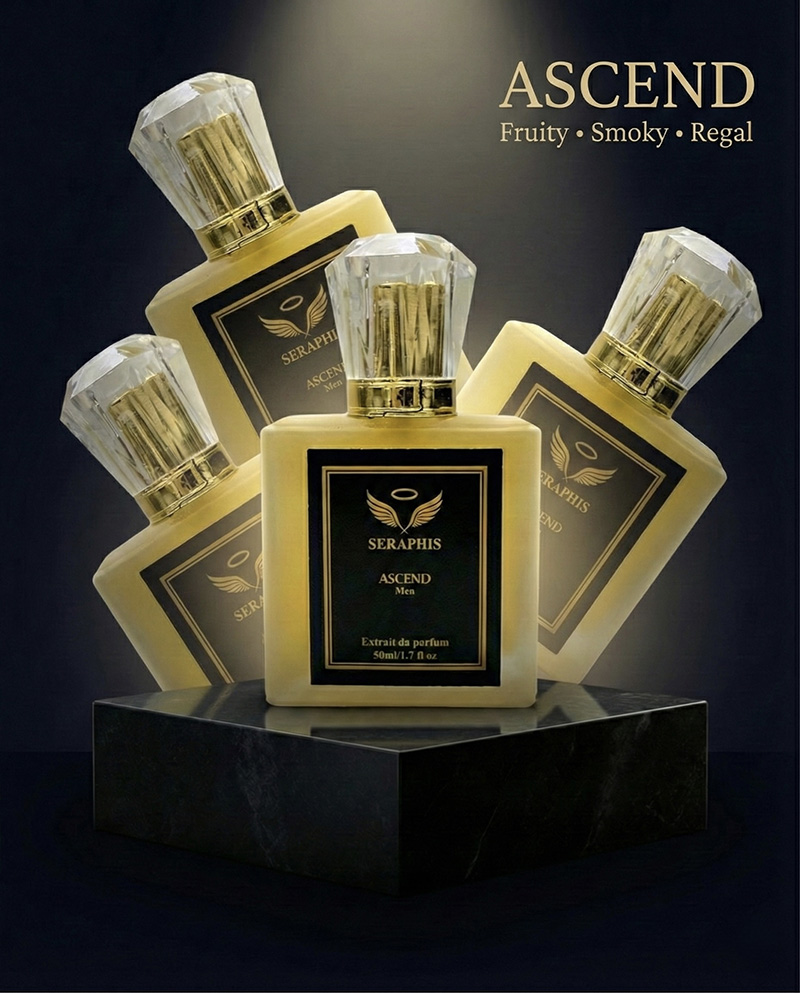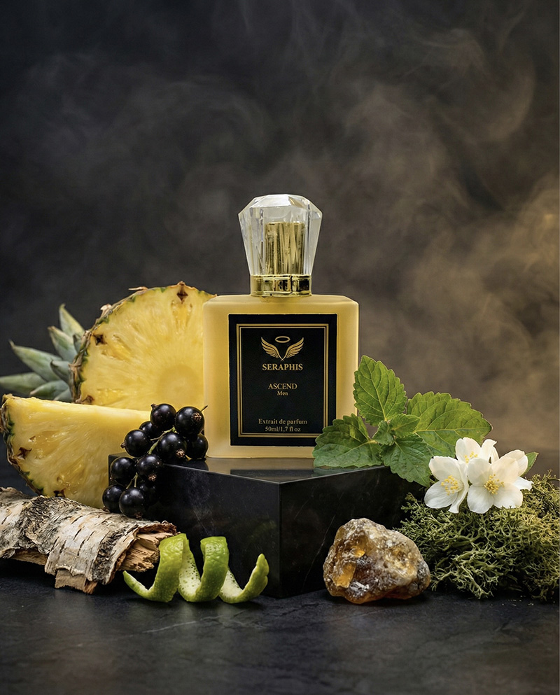 ASCEND by Seraphis captures the energy of ambition and unstoppable drive. The fragrance opens with vibrant fruity freshness that instantly commands attention and creates a bold first impression.