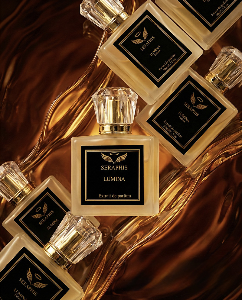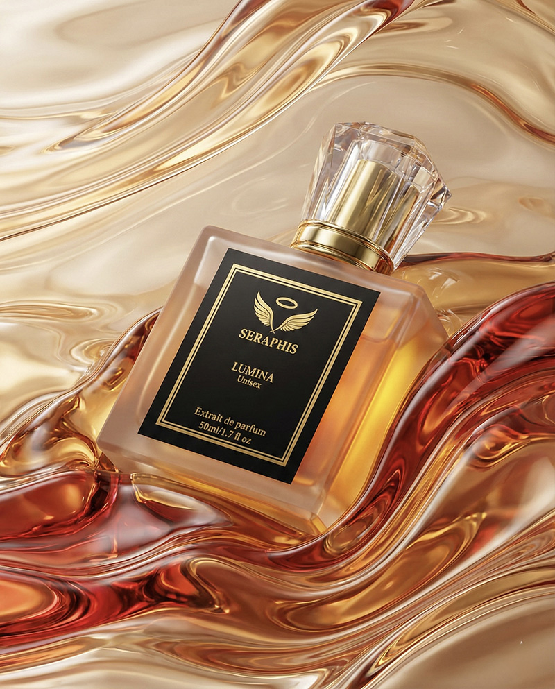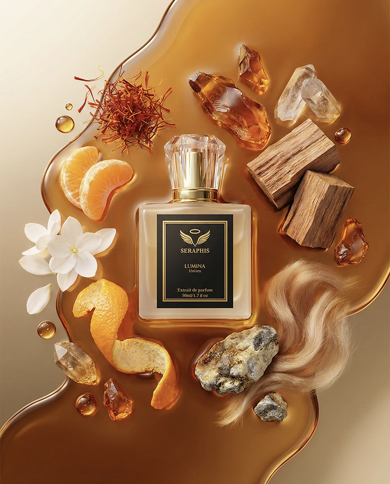 LUMINA by Seraphis captures the brilliance of light meeting warmth. The fragrance opens with a luminous blend of saffron, mandarin, and jasmine, creating a radiant and sophisticated first impression.