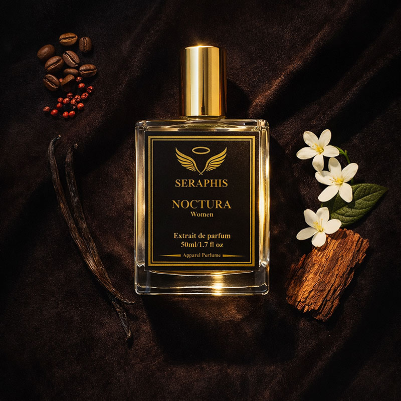 NOCTURA by Seraphis captures the mysterious energy of the night. The fragrance opens with a captivating burst of sweet gourmand notes that feel bold, addictive, and irresistibly sensual.