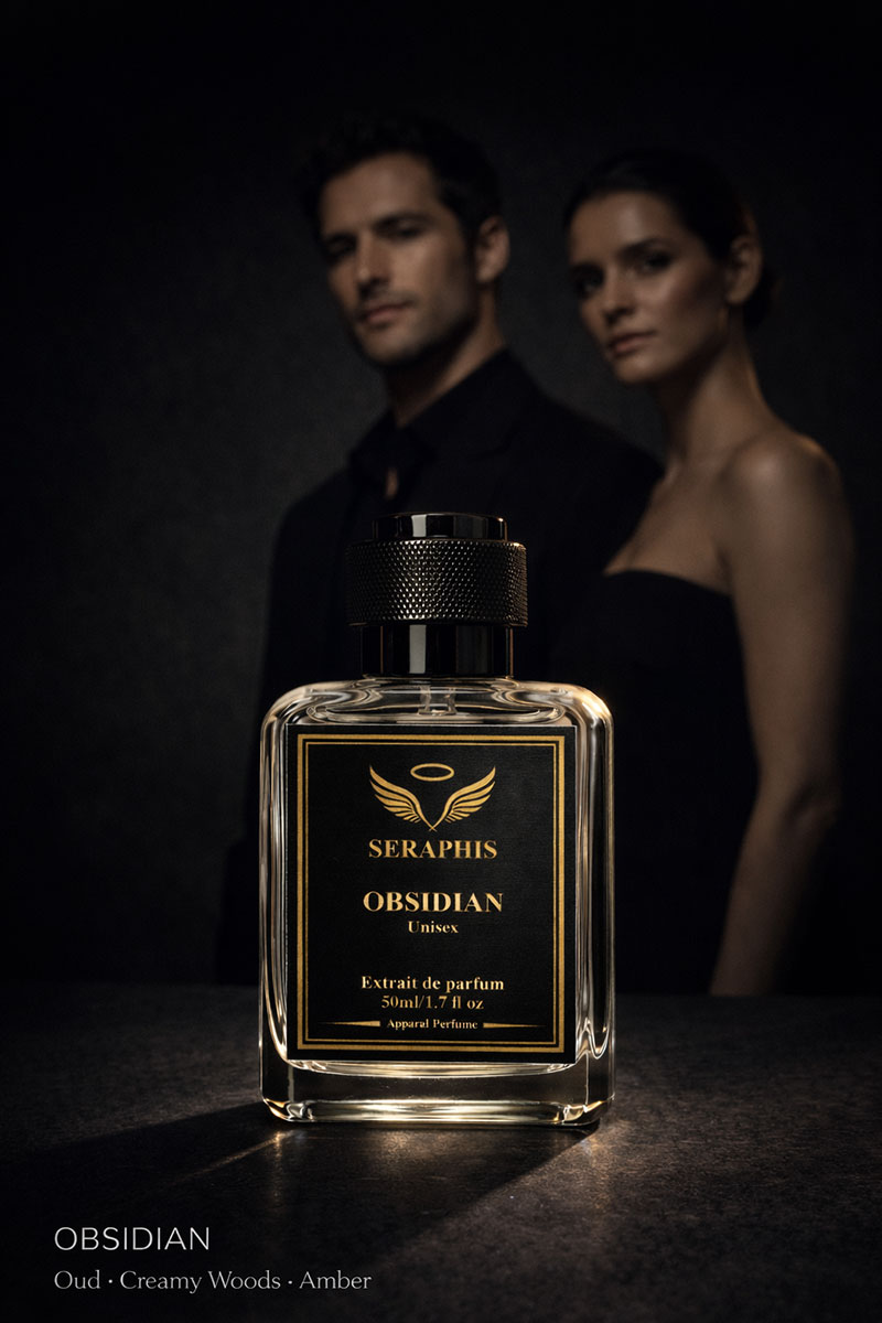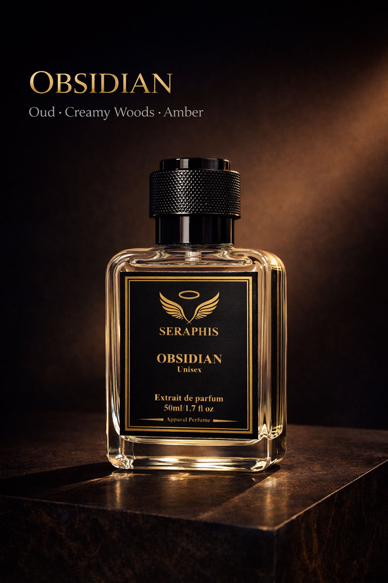 OBSIDIAN by Seraphis embodies quiet power and refined strength. The fragrance opens with deep, captivating notes that immediately command attention while maintaining elegant balance.