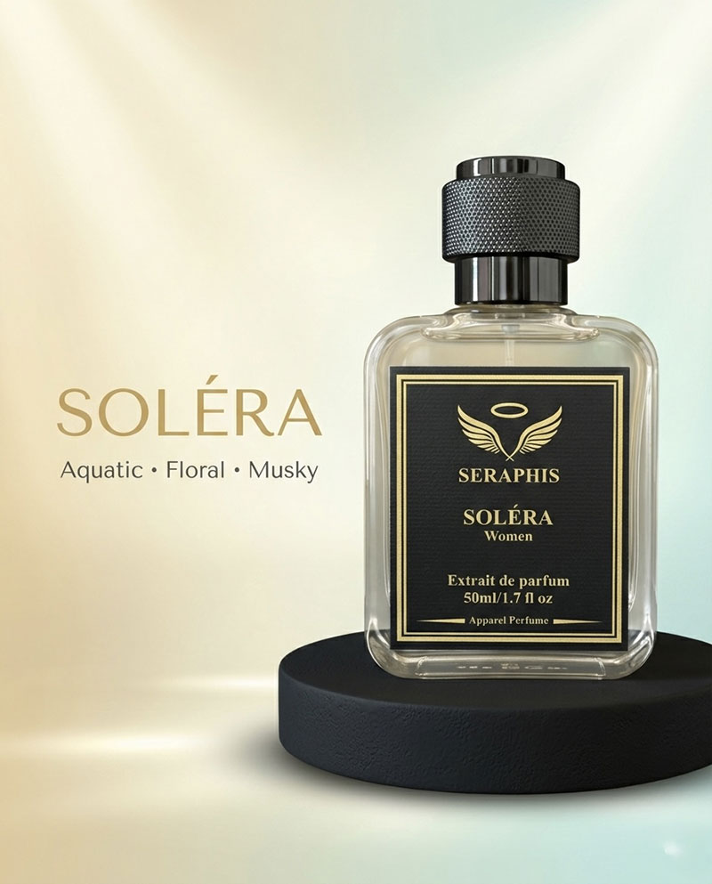 SOLÉRA belongs to the aquatic floral fragrance family, known for watery freshness layered with soft florals and clean musky warmth — a timeless style loved for its serene elegance.